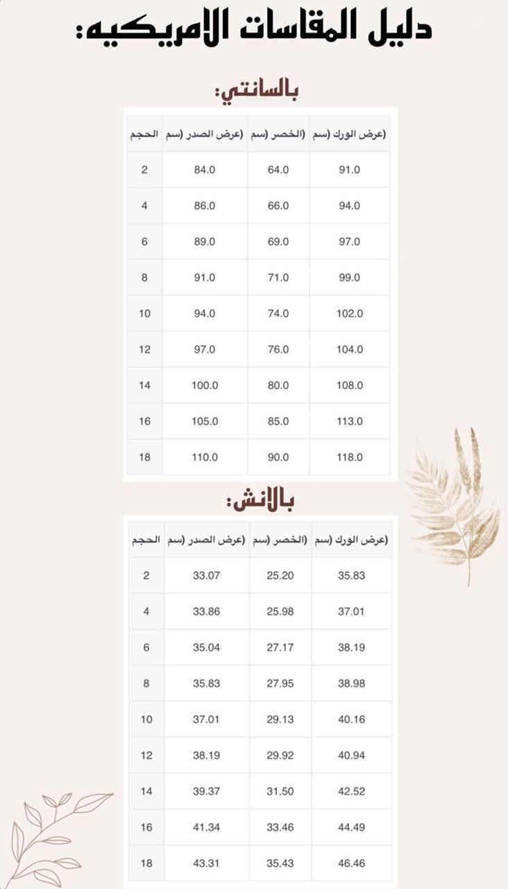 دليل المقاسات